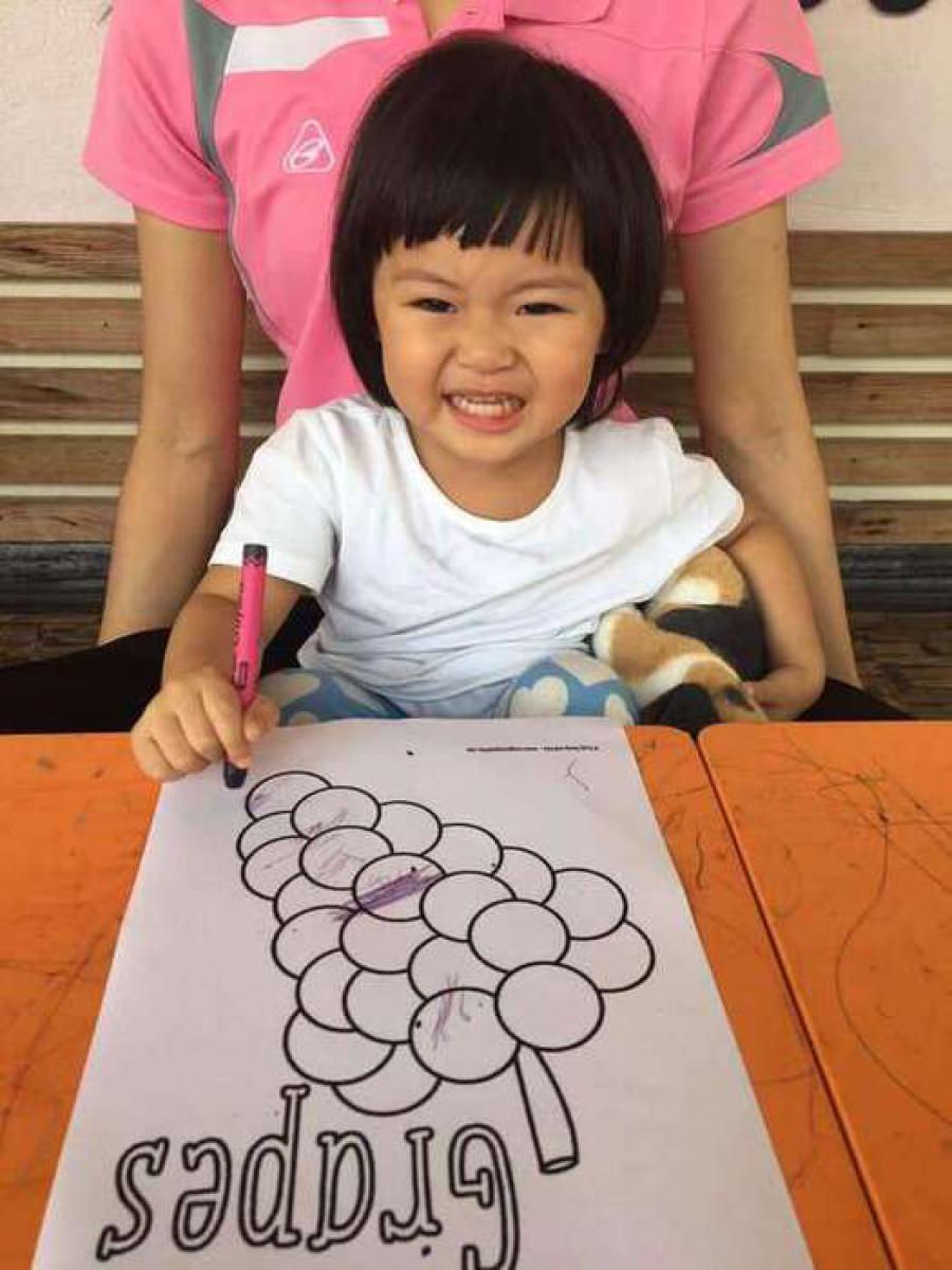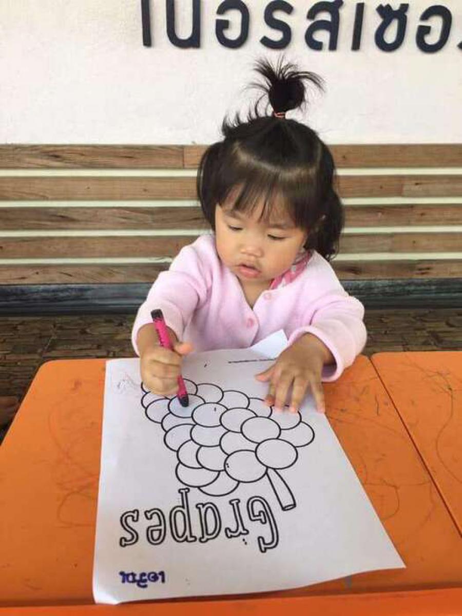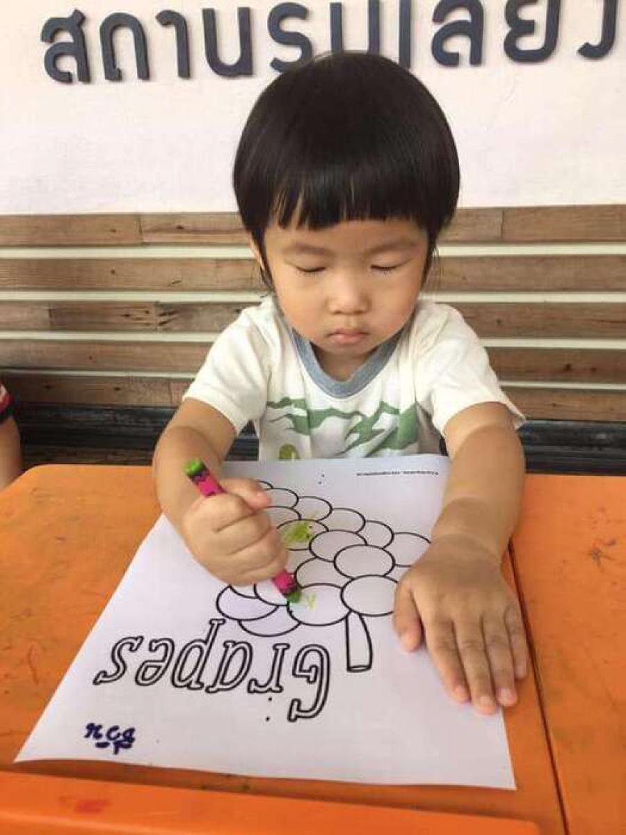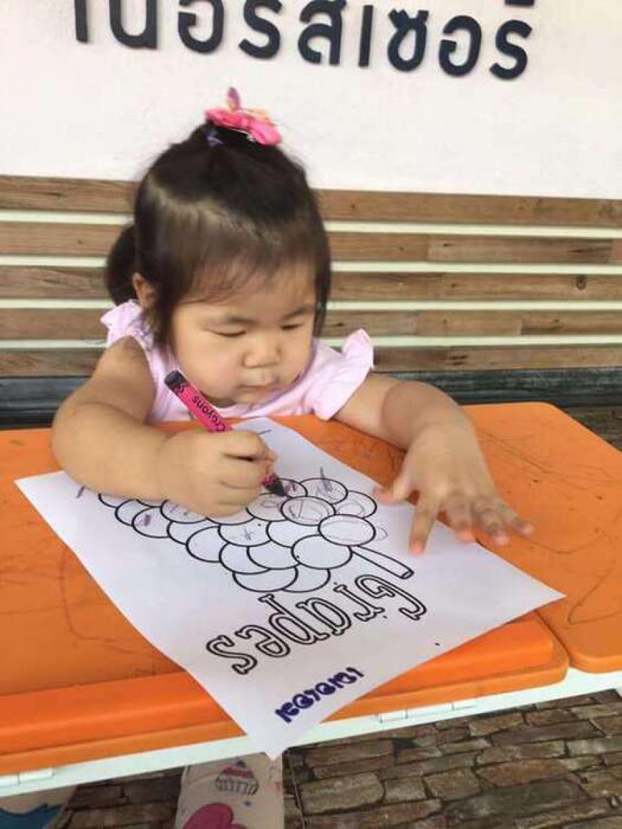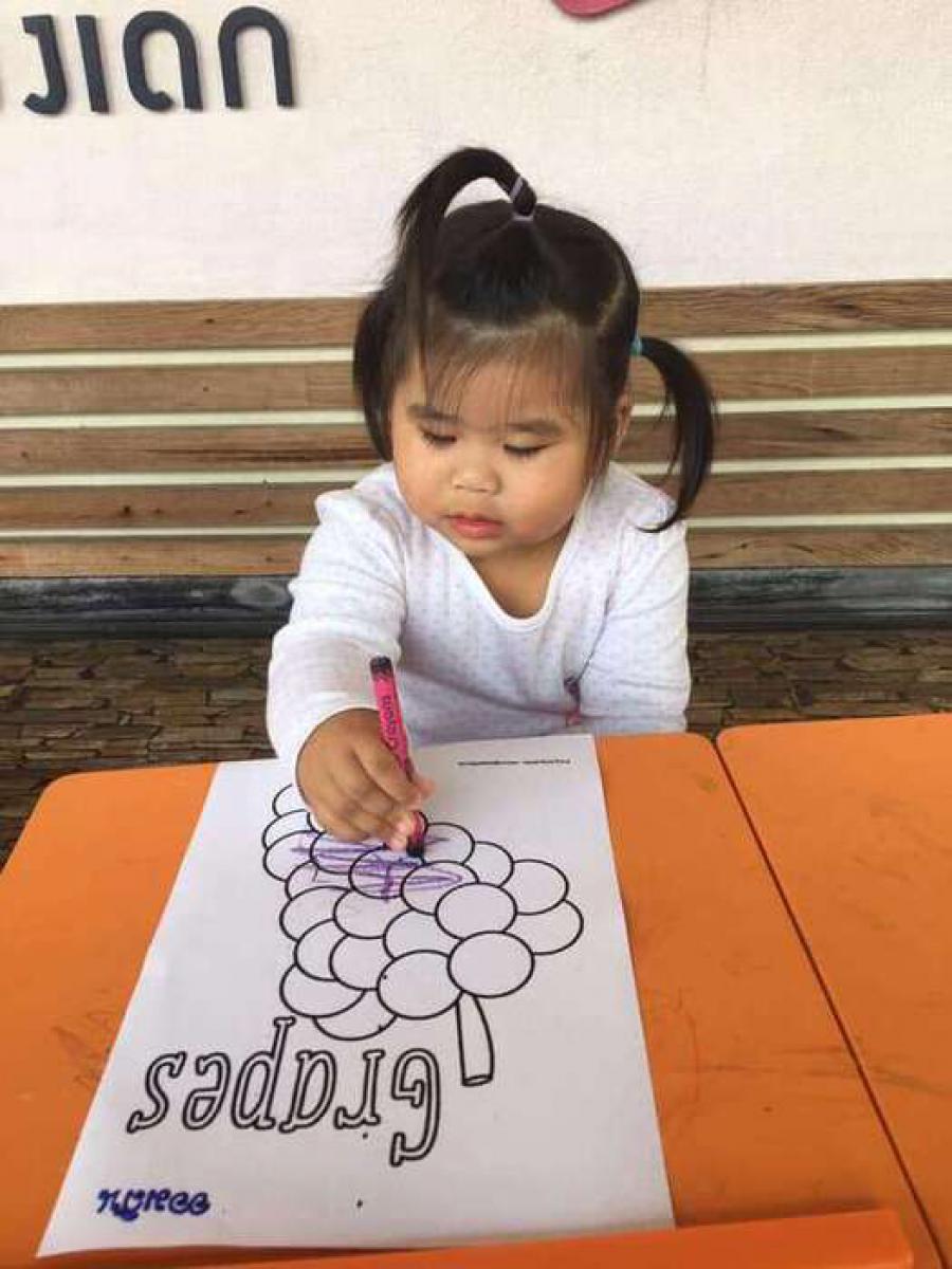 วันนี้หนูๆมาฝึกกการใช้กล้ามเนื้อมัดเล็กในการระบายสีภาพองุ่นค่ะ ส่งเสริมพัฒนาการกล้ามเนื้อมัดเล็กให้ประสานสัมพันธ์ระหว่างมือกับตา #สวยทุกคนเลยค่ะ???????????????? S:0