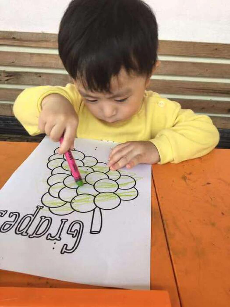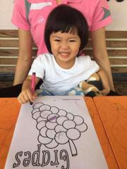 วันนี้หนูๆมาฝึกกการใช้กล้ามเนื้อมัดเล็กในการระบายสีภาพองุ่นค่ะ
