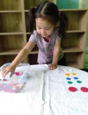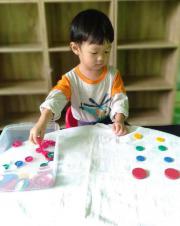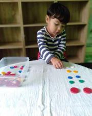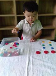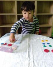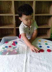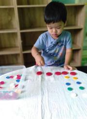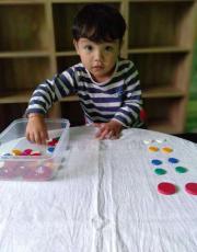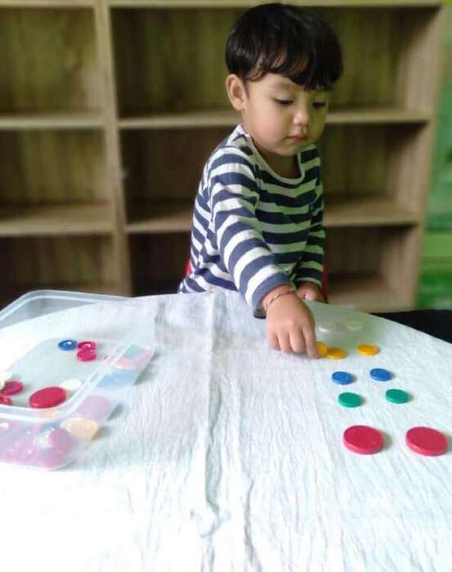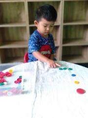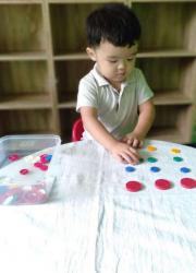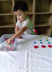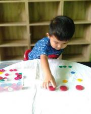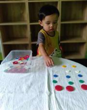 กิจกรรมเรียงฝาขวดน้ำขนาดต่างๆ และแบ่งกลุ่มสี (ห้องลูกหมี) วันอังคารที่ 21 มกราคม 2563