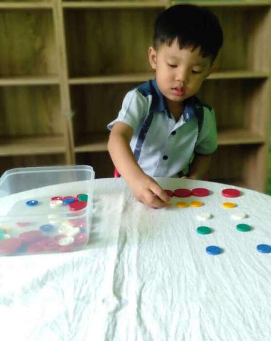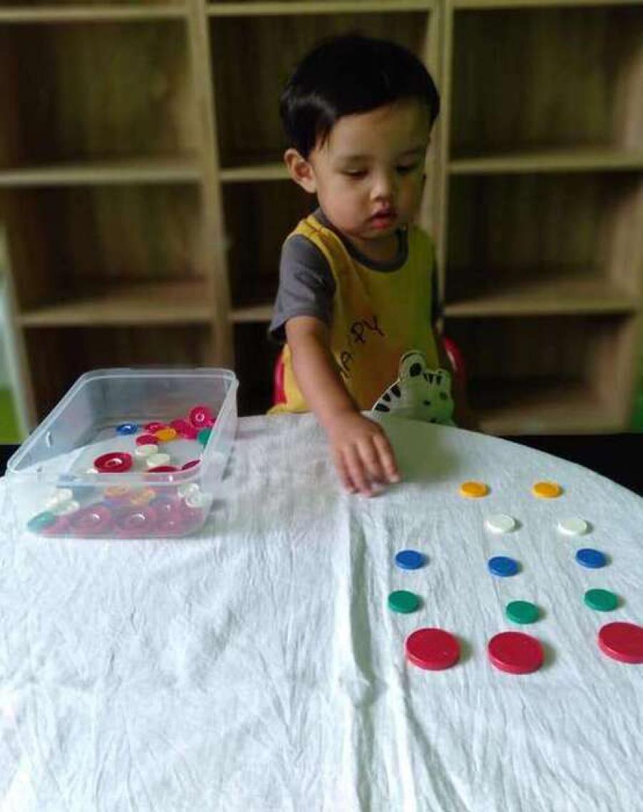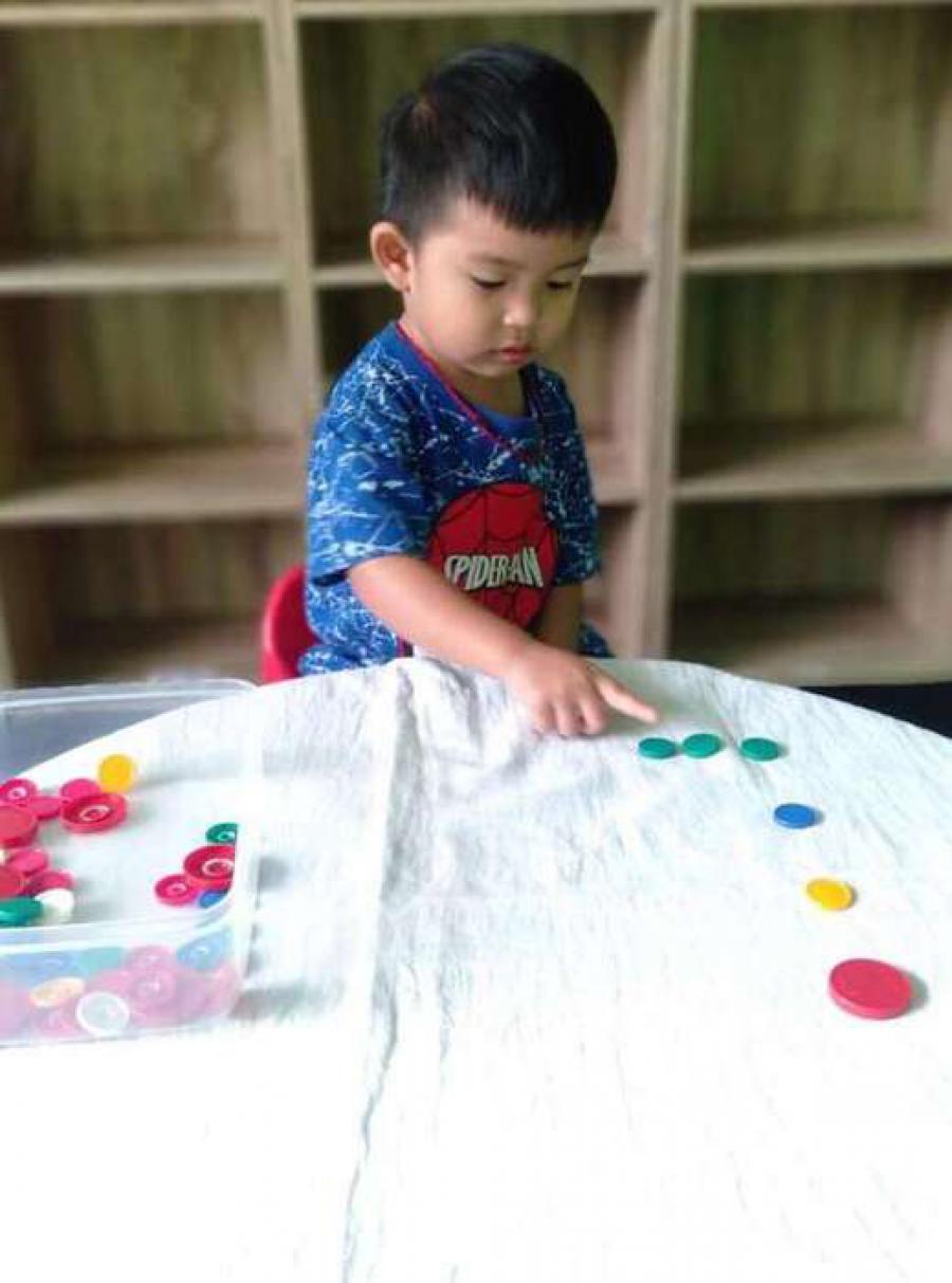 กิจกรรมเรียงฝาขวดน้ำขนาดต่างๆ และแบ่งกลุ่มสี ส่งเสริมพัฒนาการด้านสติปัญญาด้านการสังเกตเชื่อมโยงสู่กระบวนการคิด วิเคราะห์และจำแนก #เก่งจริงๆเลยค่ะ @อุ่นไอรัก???????? S:0