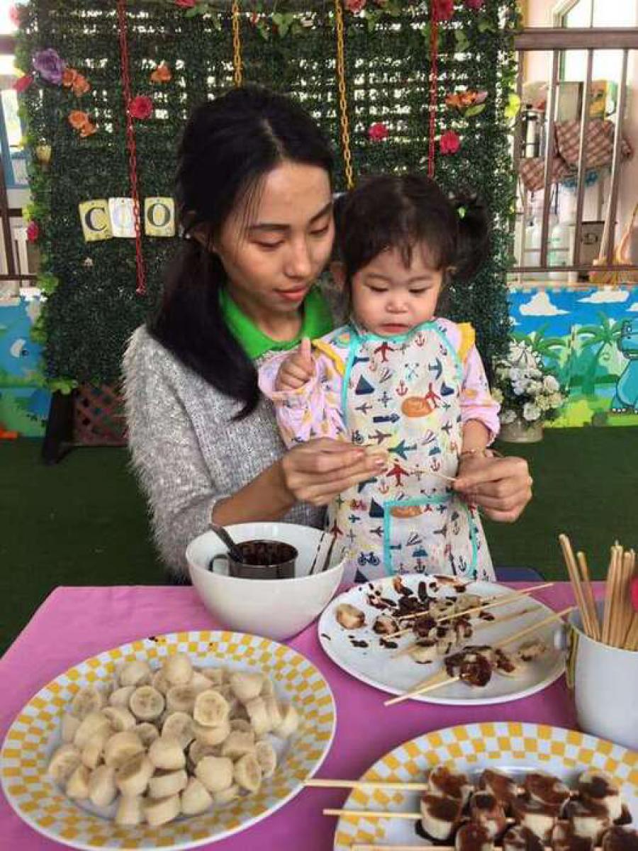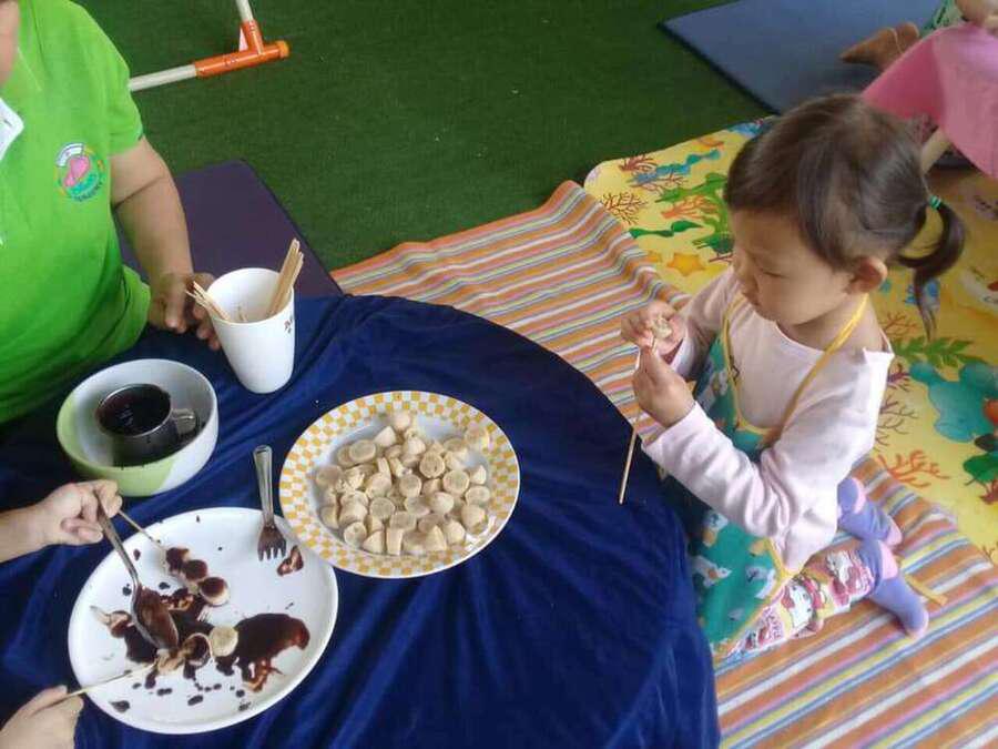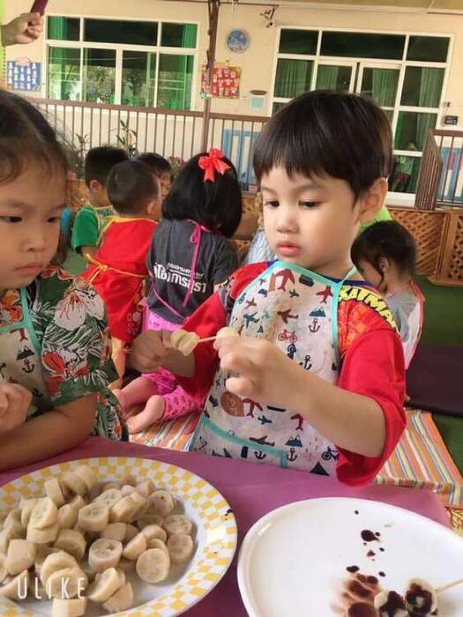 Cooking Day วันนี้ขอเสนอเมนู ช็อคโก้บานาน่า ส่งเสริมพัฒนาการกล้ามเนื้อมัดเล็กและฝึกทักษะชีวิตในการช่วยเหลือตนเอง ให้ลูกๆเกิดความภาคภูมิใจในฝีมือตนเอง #ชอบสุดเลยค่ะช็อคโกแลตเนี่ย ???????? #เก่งทุกคนเลย S:0