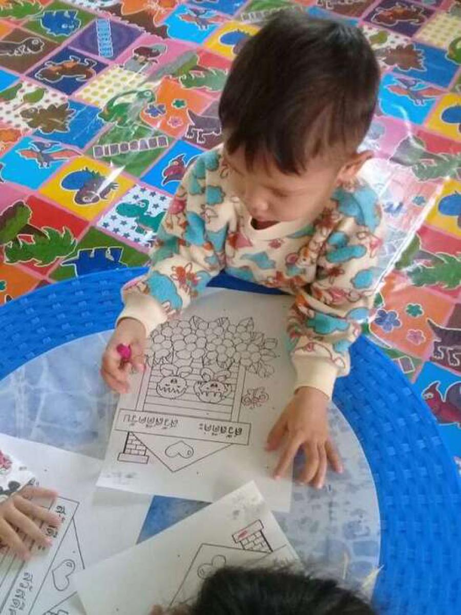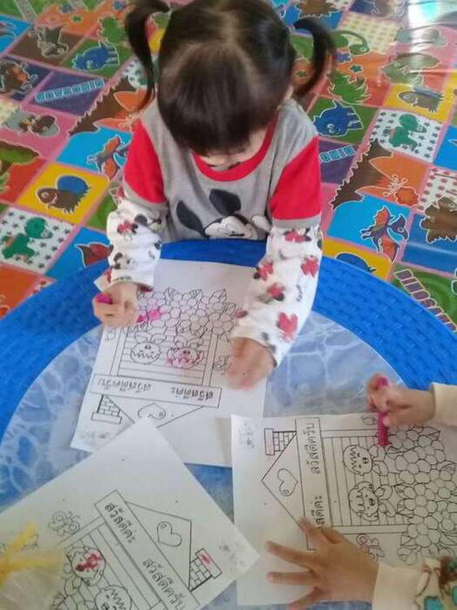 กิจกรรมระบายสีภาพการไหว้ สวัสดีครับ สวสัดีคะ (ห้องเด็กโต) วันอังคาร ที่ 28 มกราคม 2563