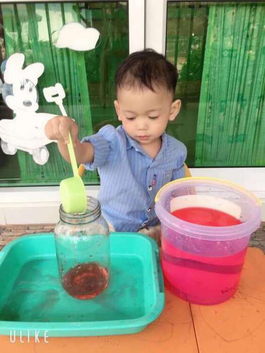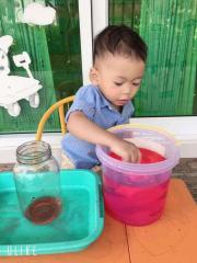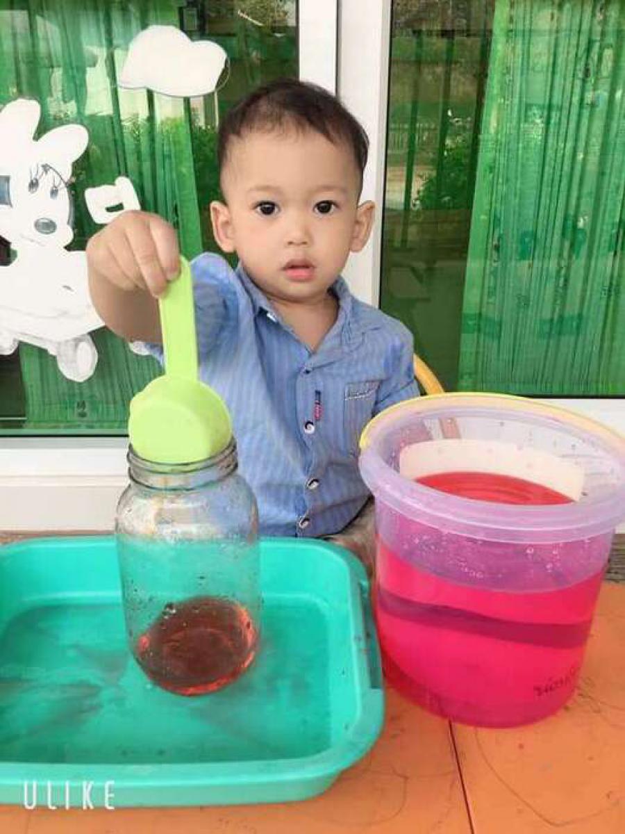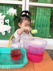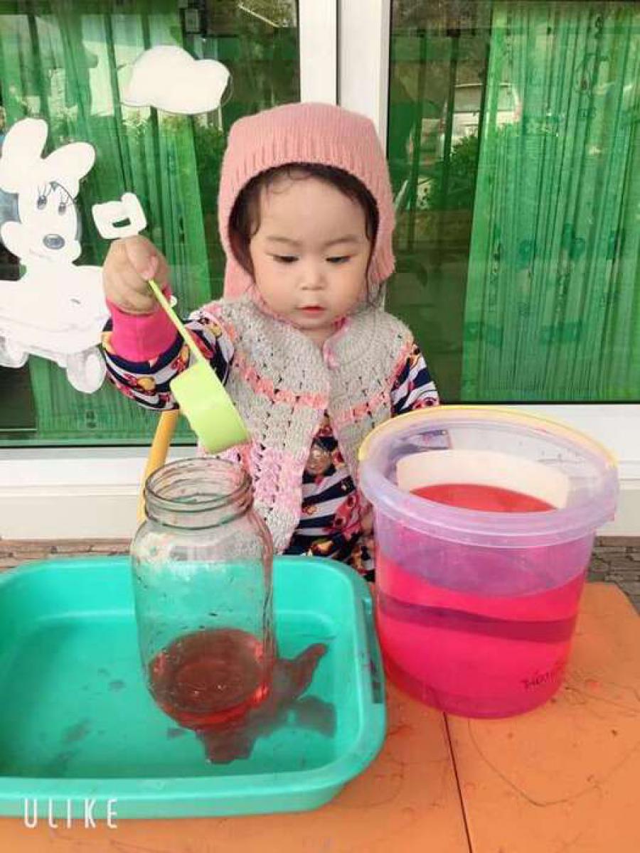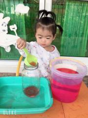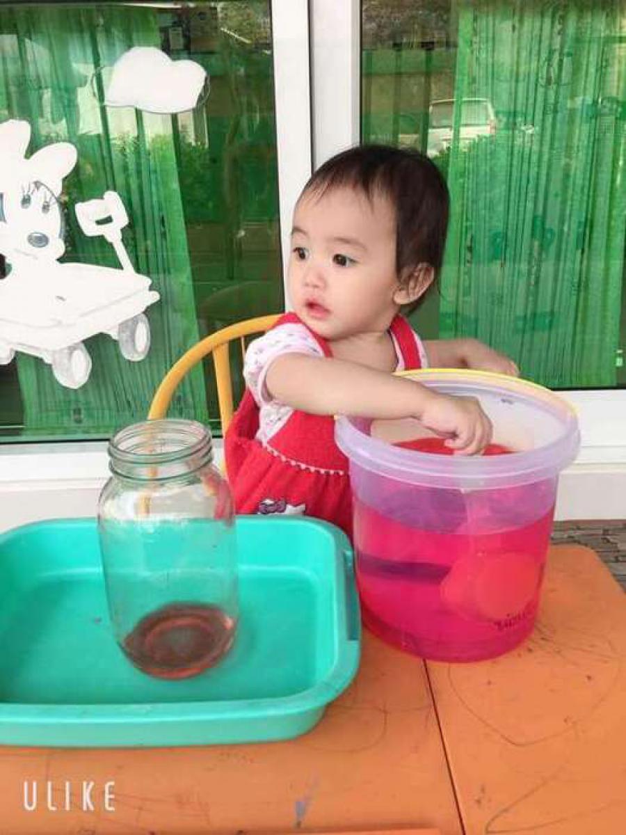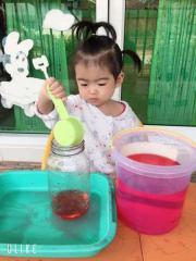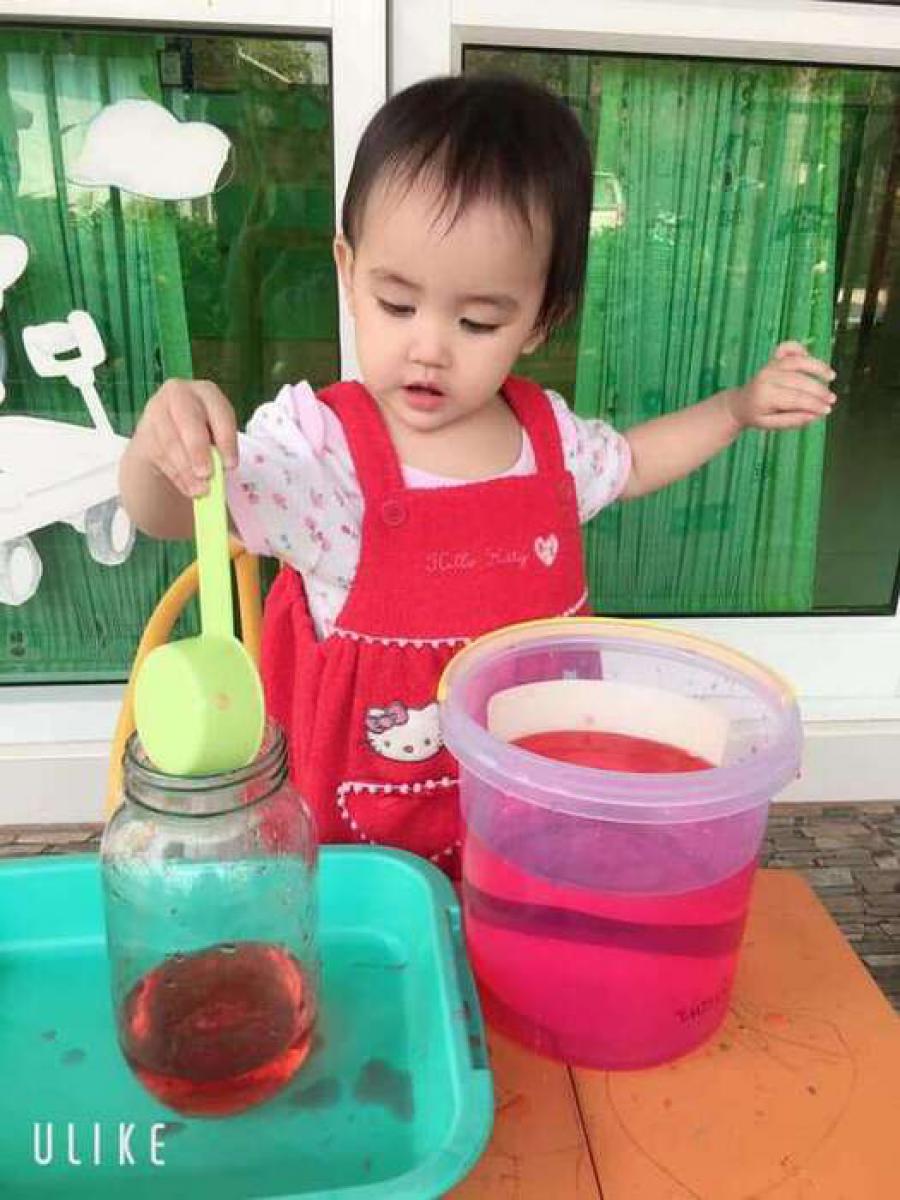กิจกรรมสร้างสรรค์กรอกน้ำใส่โหลแก้ว ส่งเสริมความแข็งแรงของกล้ามเนื้อมัดเล็กและความพยามของลูกๆในการปฏิบัติกิจกรรม (ห้องหมีน้อย) วันพฤหัสบดี ที่ 30 มกราคม 2563