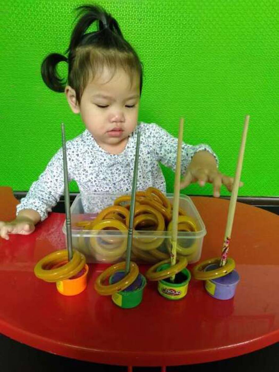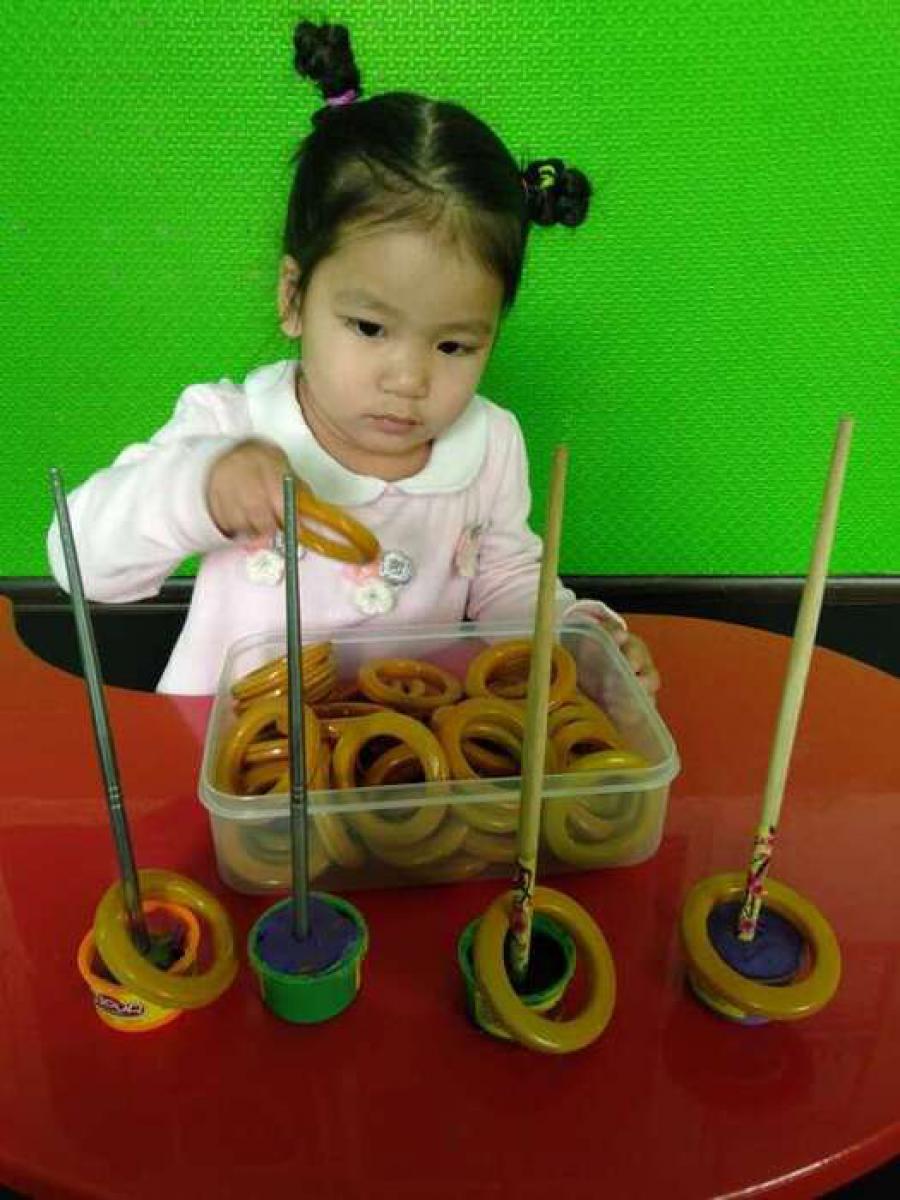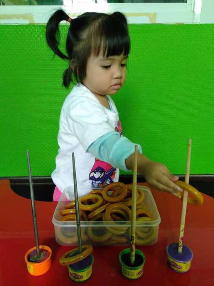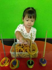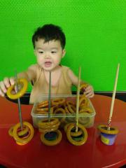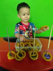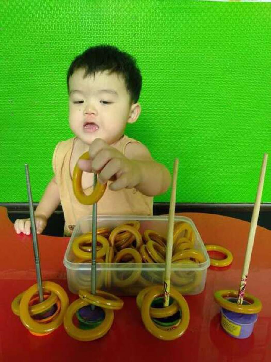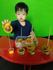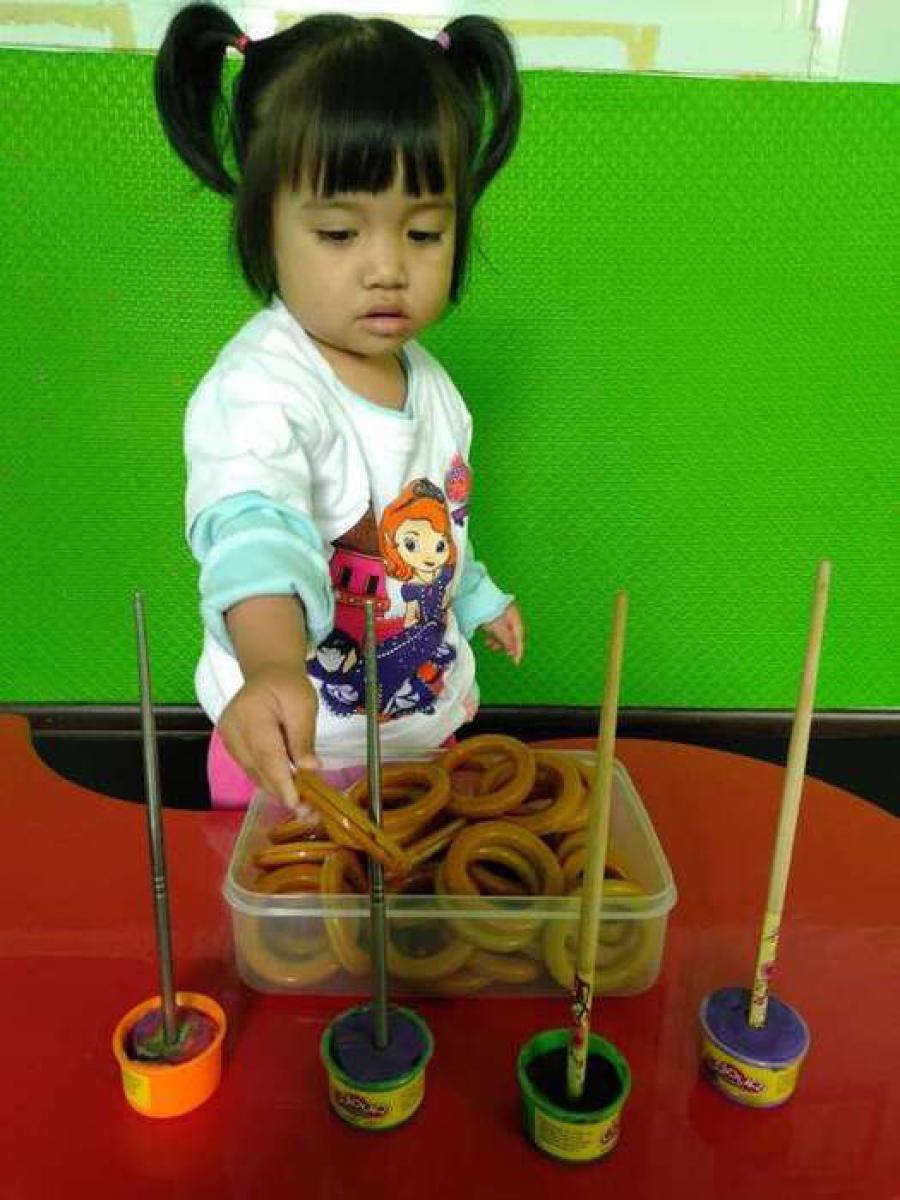 กิจกรรมวางห่วงตามลำดับ ส่งเสริมพัฒนาการกล้ามเนื้อมัดเล็กและการประสานสัมพันธ์ระหว่างมือกับตา ฝึกการเรียนรู้เรื่องลำดับที่และให้ลูกๆได้ลงมือปฏิบัติกิจกรรมด้วยตนเอง เสริมสร้างความมั่นใจกล้าคิดกล้าตัดสินใจให้กับลู S:0