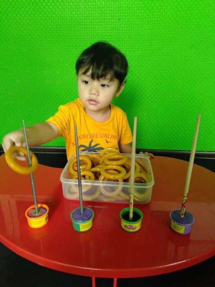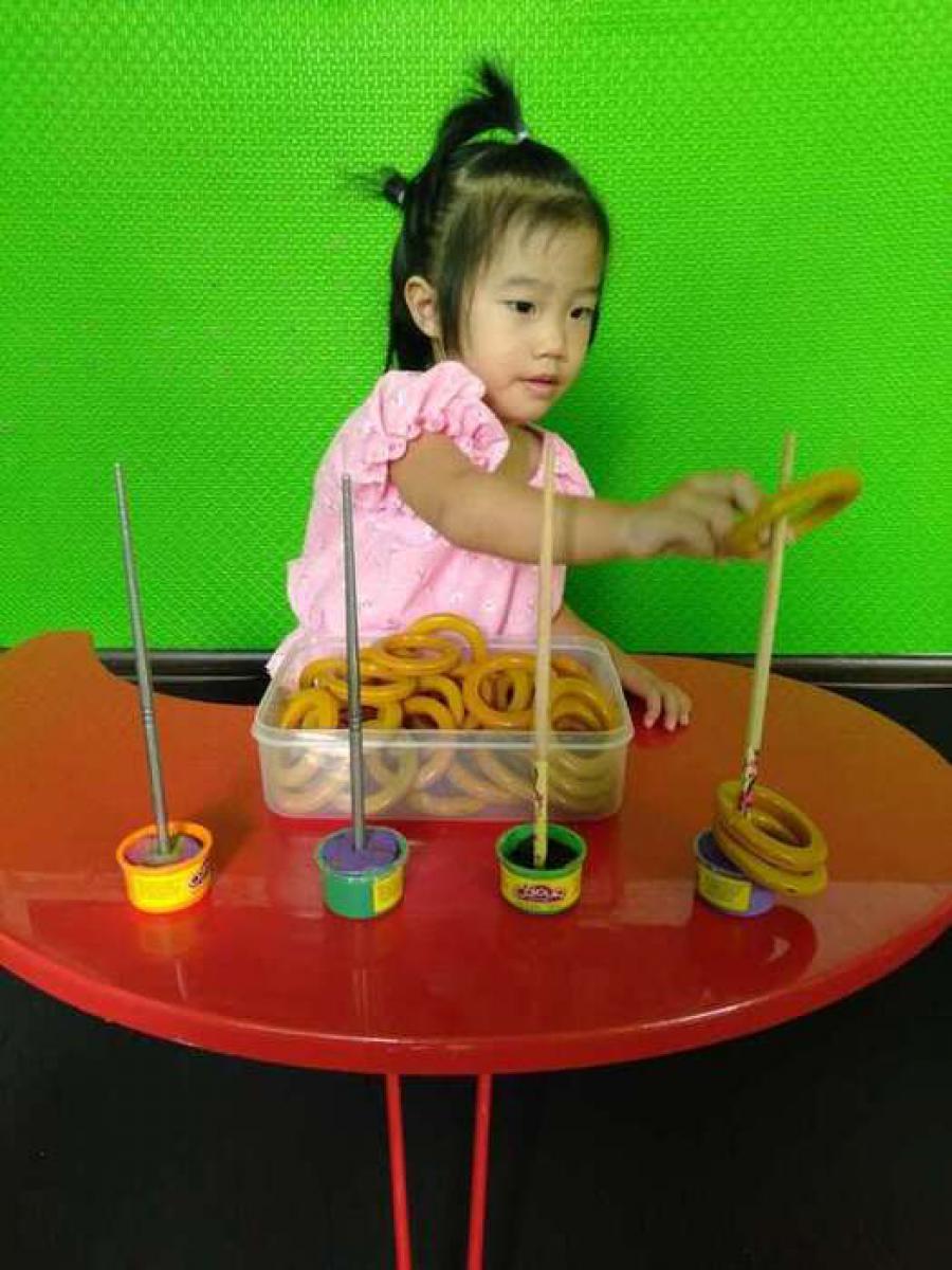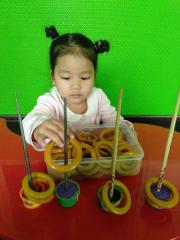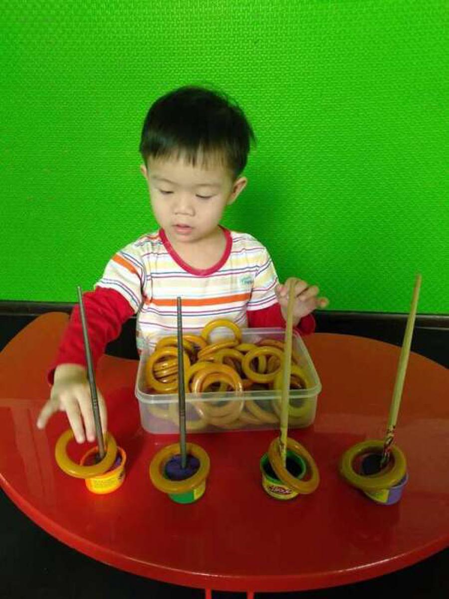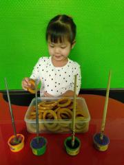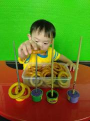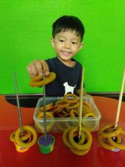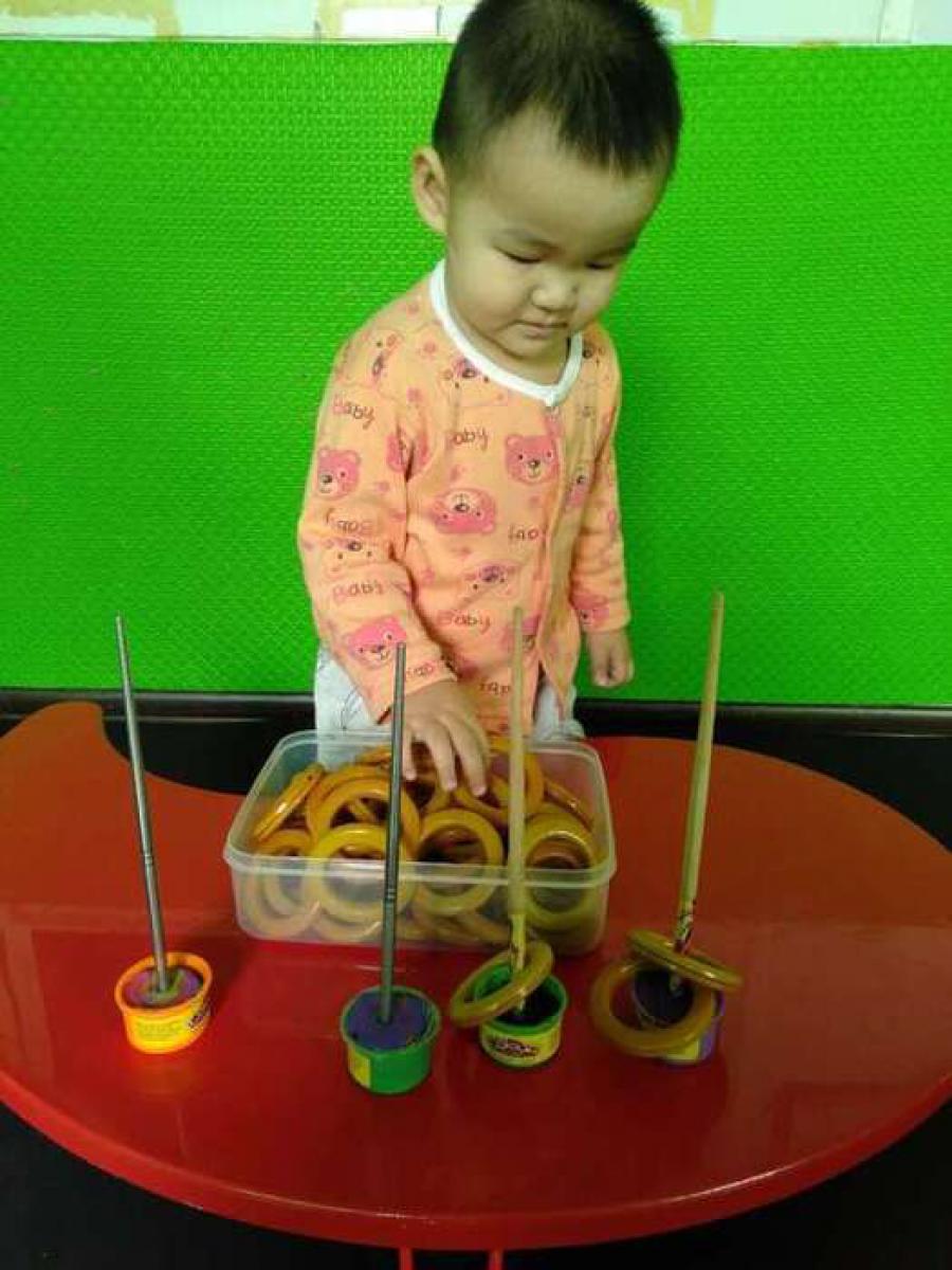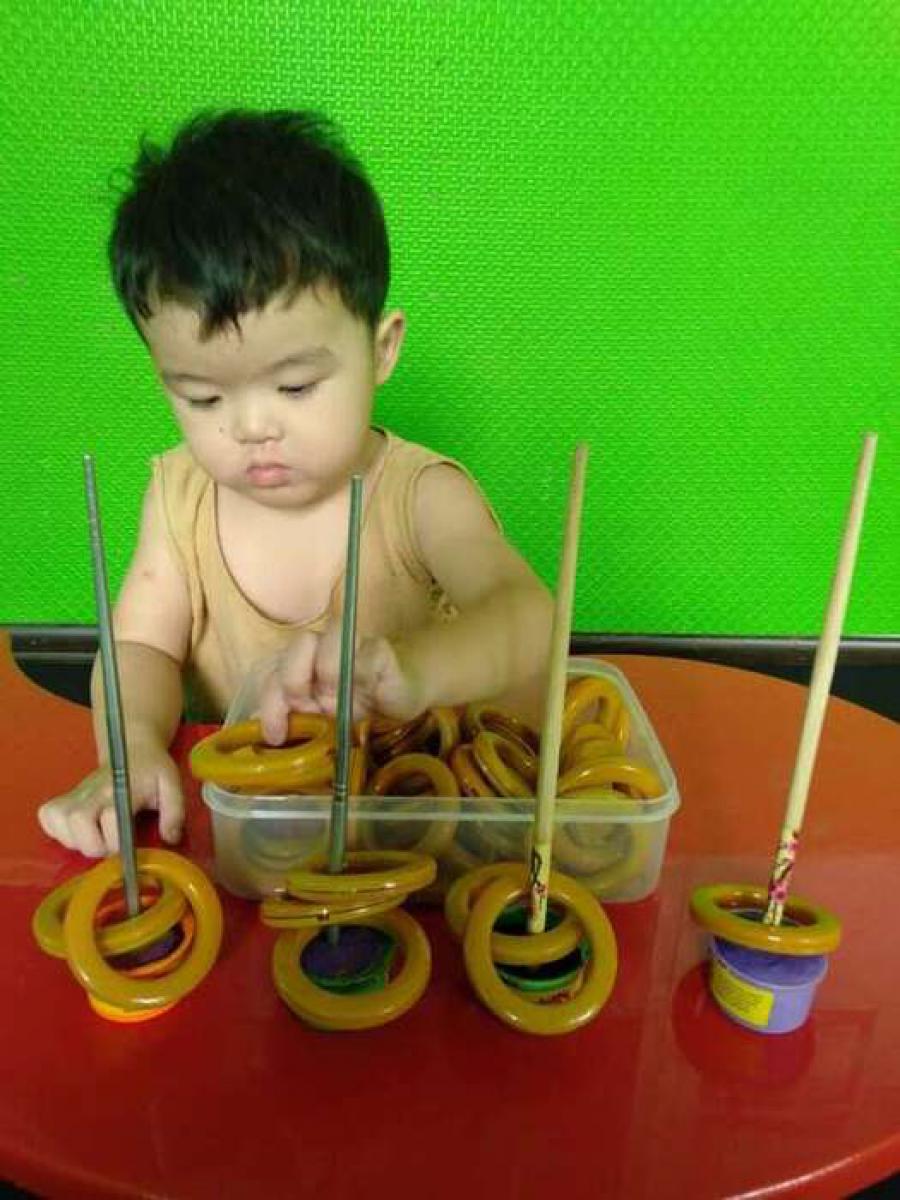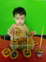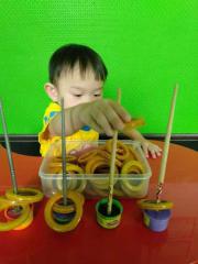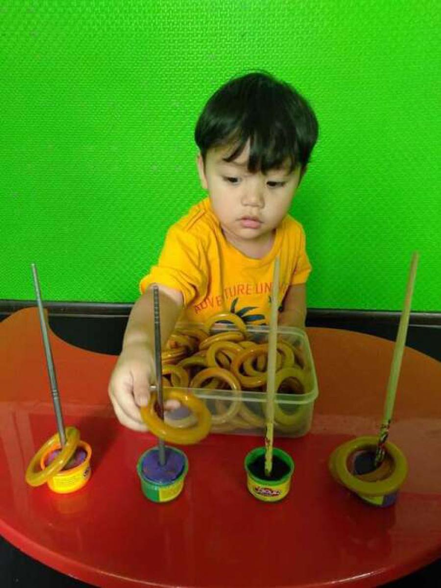 กิจกรรมวางห่วงตามลำดับ ส่งเสริมพัฒนาการกล้ามเนื้อมัดเล็กและการประสานสัมพันธ์ระหว่างมือกับตา ฝึกการเรียนรู้เรื่องลำดับที่และให้ลูกๆได้ลงมือปฏิบัติกิจกรรมด้วยตนเอง เสริมสร้างความมั่นใจกล้าคิดกล้าตัดสินใจให้กับลู S:0