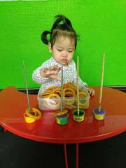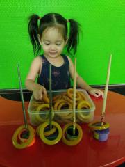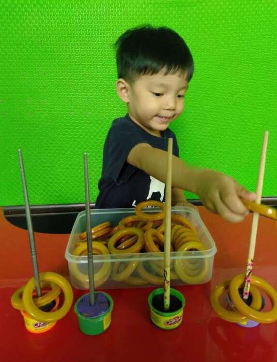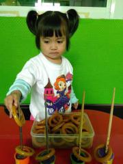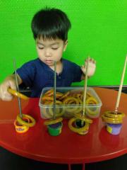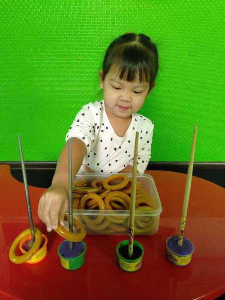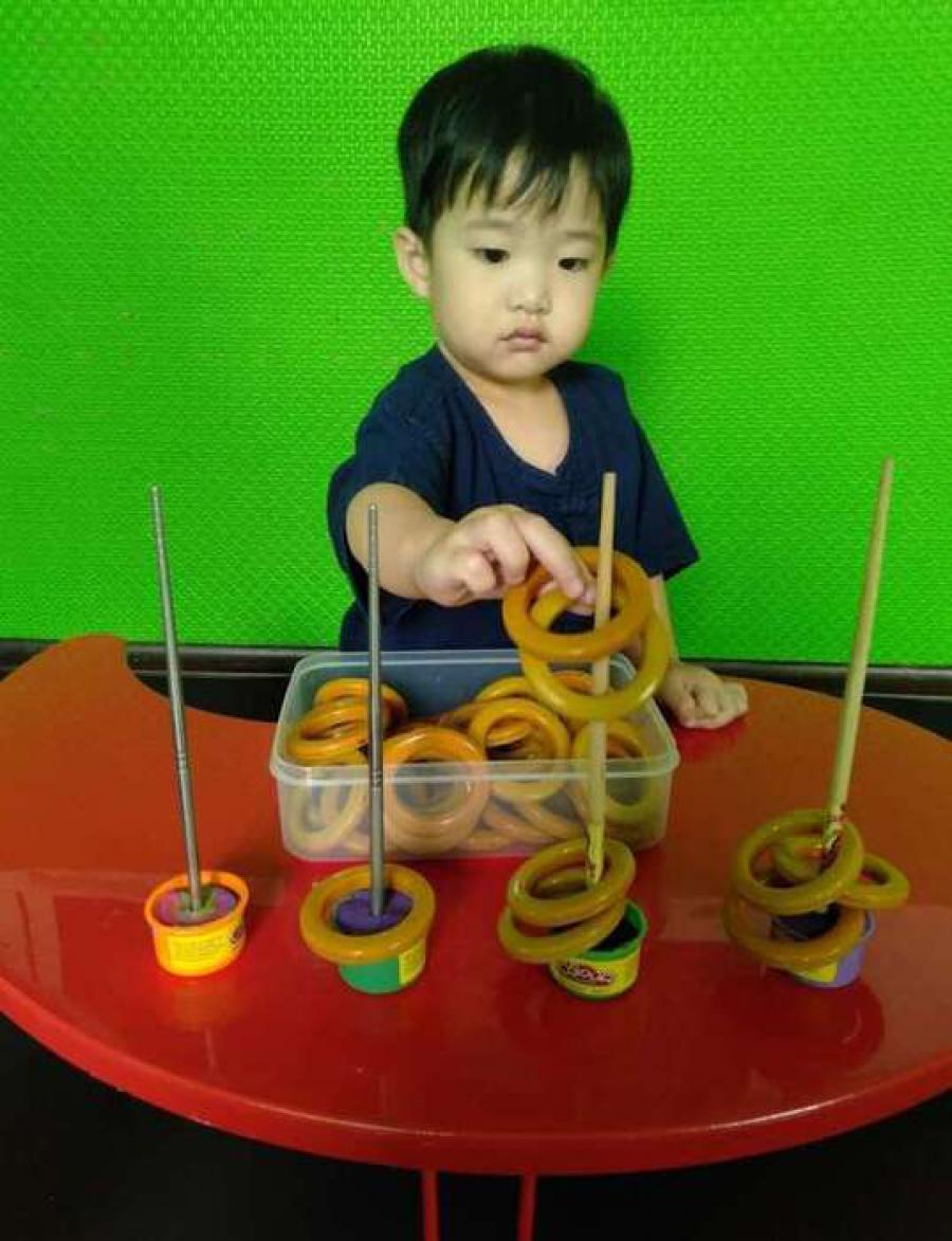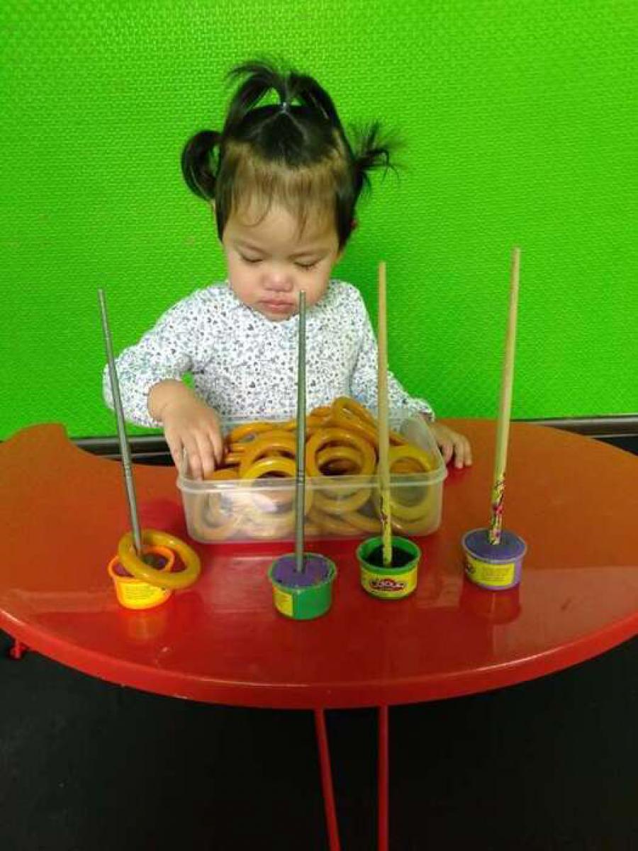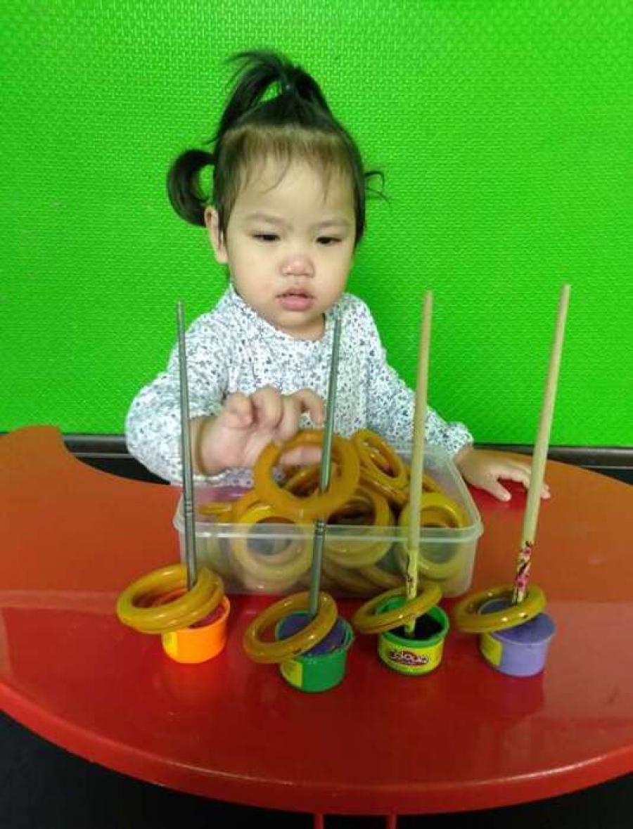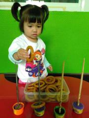กิจกรรมวางห่วงตามลำดับ ส่งเสริมพัฒนาการกล้ามเนื้อมัดเล็กและการประสานสัมพันธ์ระหว่างมือกับตา ฝึกการเรียนรู้เรื่องลำดับที่และให้ลูกๆได้ลงมือปฏิบัติกิจกรรมด้วยตนเอง เสริมสร้างความมั่นใจกล้าคิดกล้าตัดสินใจให้กับลู S:0