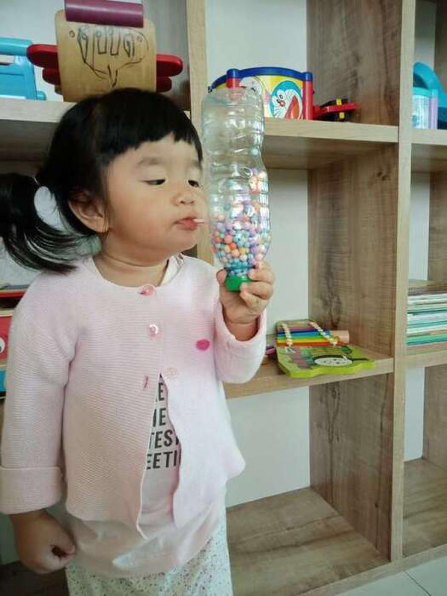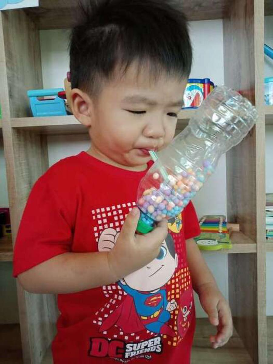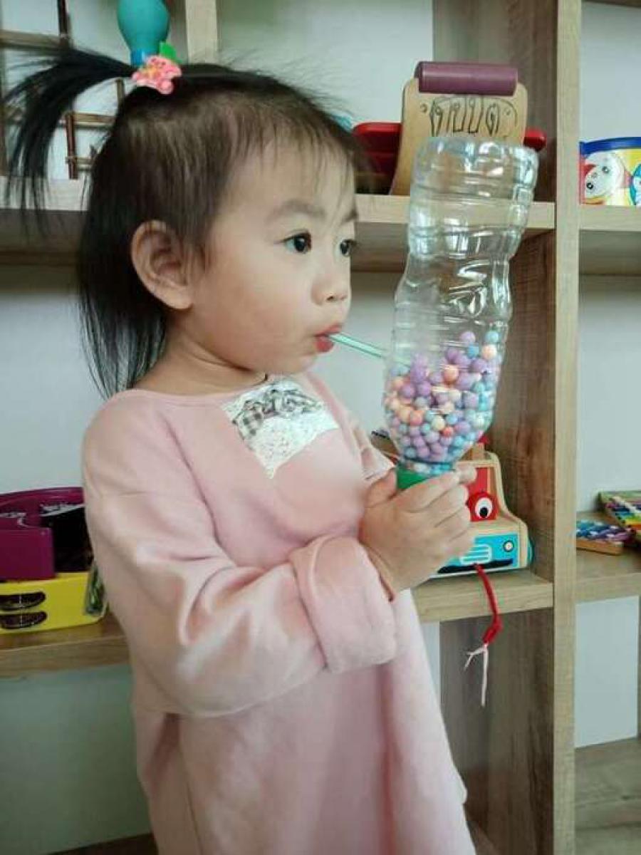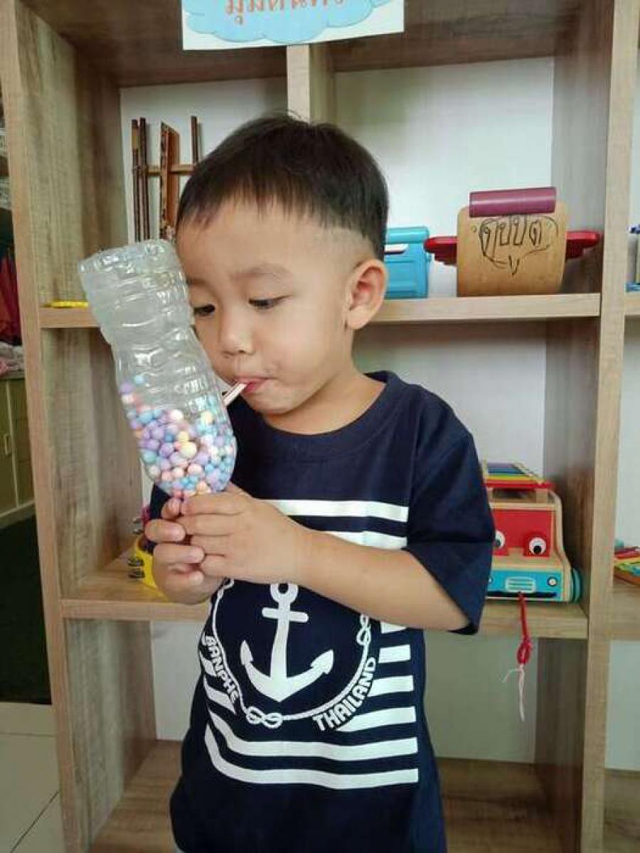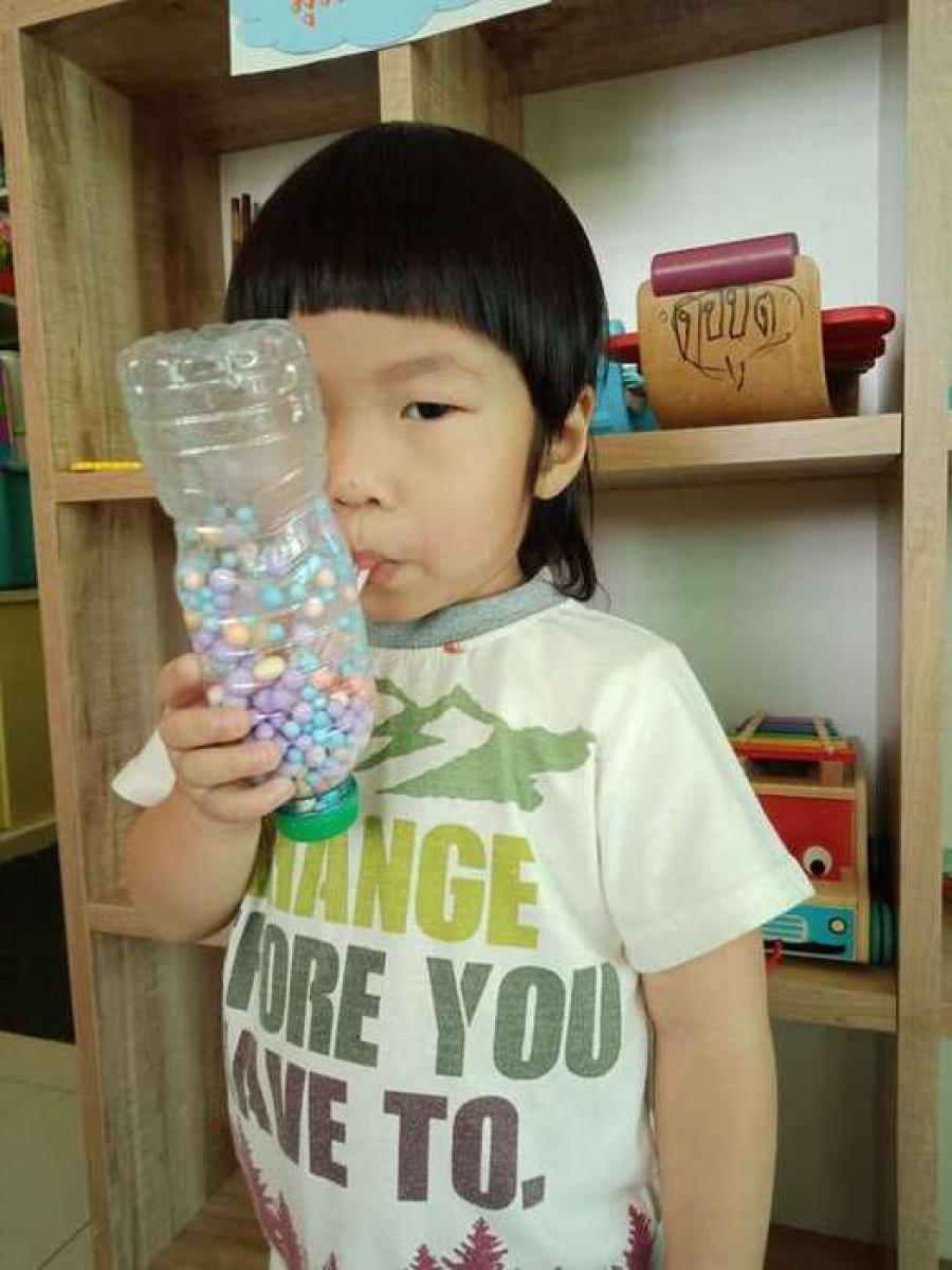 กิจกรรมเป่าเม็ดโฟมกระตุ้นการขยายของปอดและฝึกการเปล่งเสียงในการพูด เพราะลูกๆในวัยนี้เป็นวัยช่างพูดและบางคนยังพูดไม่ชัดเจน กิจกรรมนี้ส่งเสริมพัฒนาการการพูดของลูกได้ดีทีเดียวค่ะ #เป่าๆให้เม็ดโฟมลอยตัวในขวดพลาสติก S:0