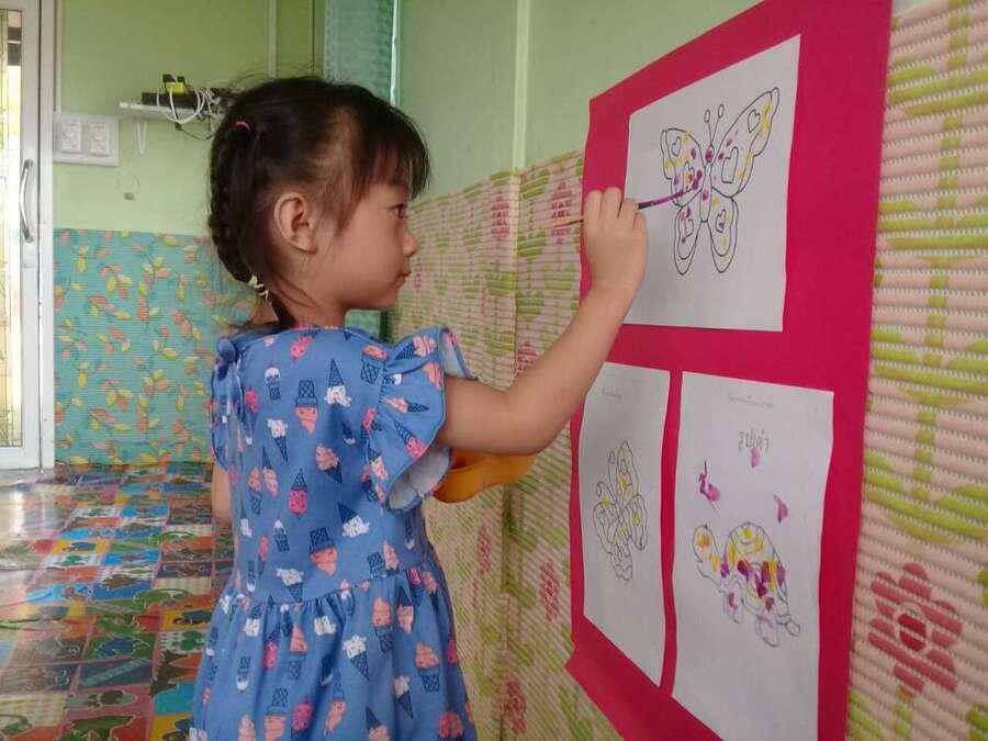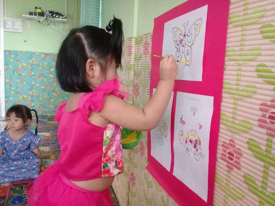 กิจกรรมสร้างสรรค์ ลากเส้นแต้มสีรูปภาพด้วยพู่กัน ส่งเสริมพัฒนาการกล้ามเนื้อมัดเล็กให้ประสานสัมพันธ์ระหว่างมือกับตา และส่งเสริมจินตนาการความคิดสร้างสรรค์ของลูกๆในระหว่างการปฏิบัติกิจกรรม S:0