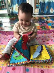 กิจกรรมเปิดหนังสือผ้ากระตุ้นพัฒนาการกล้ามเนื้อมัดเล็กให้แข็งแรงและพัฒนาการทางสติปัญญาด้านการสังเกต การคิด/วิเคราะห์ ได้เรียนรู้สีสันต่างๆ ซึ่งช่วยให้ลูกมีสมาธิกับกิจกรรมตรงหน้าได้เป็นอย่างดี #เพราะทุกอย่างคือสิ่งแปลกใหม่สำหรับลูกในวัยนี้ #ยิ่งเล่นยิ่งได้เรียนรู้@อุ่นไอรัก S:0